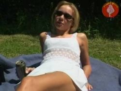 Junges Mädel beim zügellosen Selbstfick Open Air