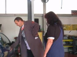 Attraktive Dame mit dicken Brüsten wird gerammelt