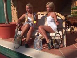 Die geilen lesbischen Schlampen treiben es draußen im Pool