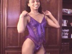 Atemberaubende dunkelhäutige Hure zeigt ihre getrimmte Muschi