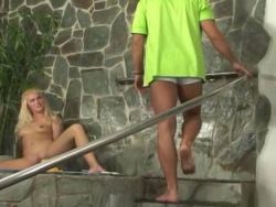 Blondes Flittchen wird auf Leiter hart durchgevögelt