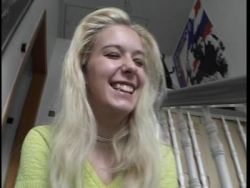 EIne hübsche hellhaarige Hausfrau macht Selfmade mit Dildo vorm Eier lecken